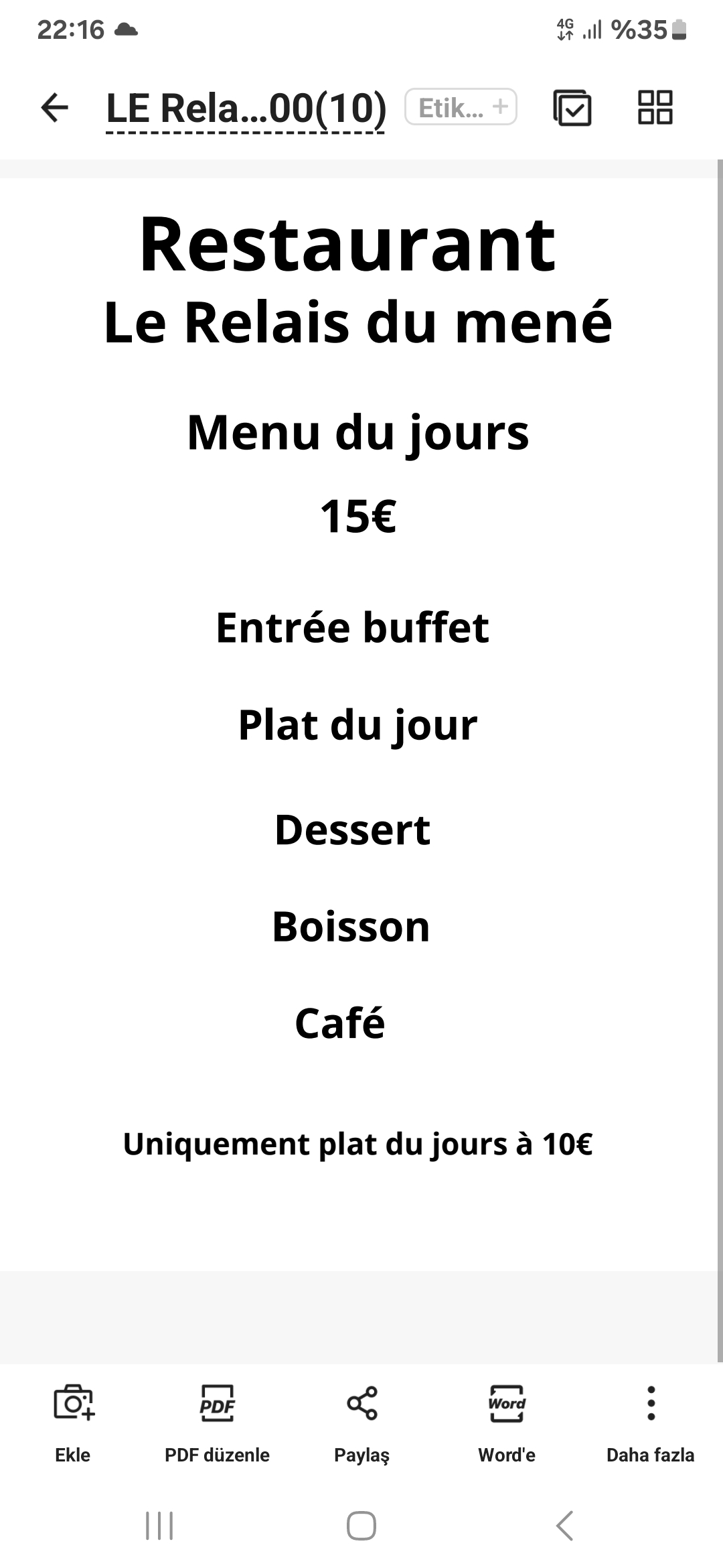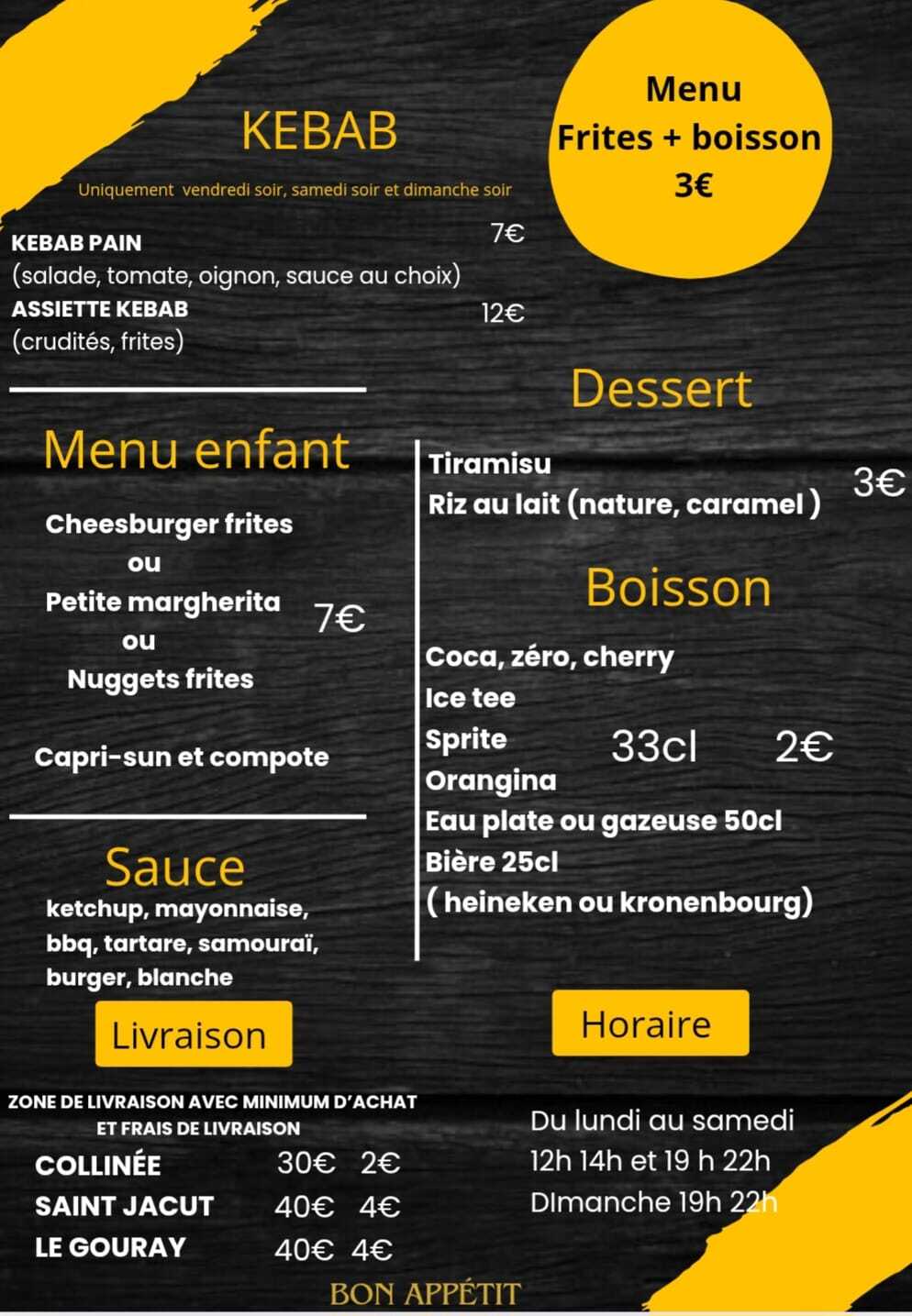 Reserve onlineWelcome to LE RESTAURANT DE MENE, LE MENE. We look forward to welcoming you. Award-winning fast food and home made cuisine are prepared by our skilled chefs. Bring your friends and family to enjoy tasty our burger, pizza, and salad bar. We're able to cater to a multitude of dietary preferences, offering a wide array of vegetarian options. Enjoy tasty beer and wine in our comfortable setting with your meal. Feeling hungry? Visit us and enjoy tasty lunch and dinner in a relaxing space.